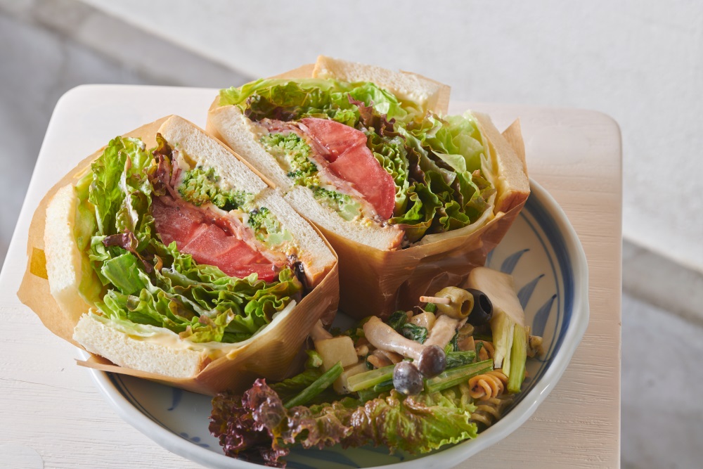 BLT(ベーコン、レタス、トマト)にチーズと季節の野菜を加えた一品。定番のサンドイッチといえば、やっぱりコレ!