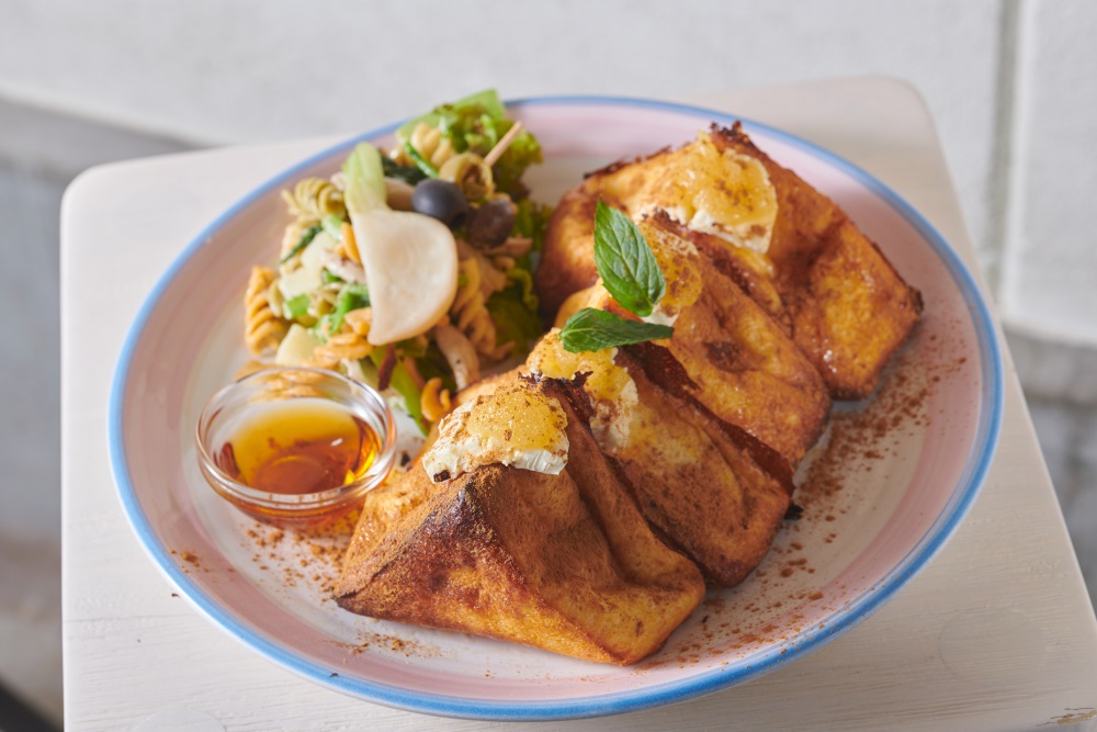 老舗ベーカリー「パンのペリカン」の食パンを厚切りにし、特製オリジナル卵液でフレンチトーストに仕上げました。スチームベクションオーブンでじっくりと時間をかけて火を通すことで、外はカリッ、中はふんわりな食感を生んでいます。オリジナルの特製ハニーレモンペーストとクリームチーズという最高の組み合わせで召し上がってください。