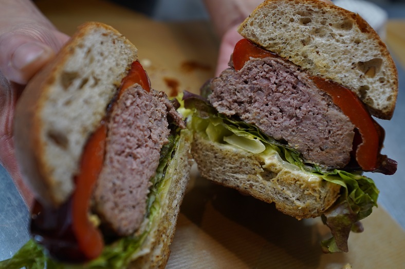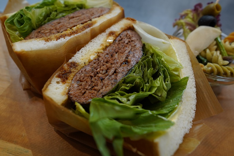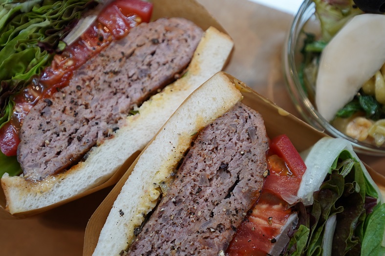 お肉がギュウギュウにつまって、バーガーの厚みにも迫力がありますね。