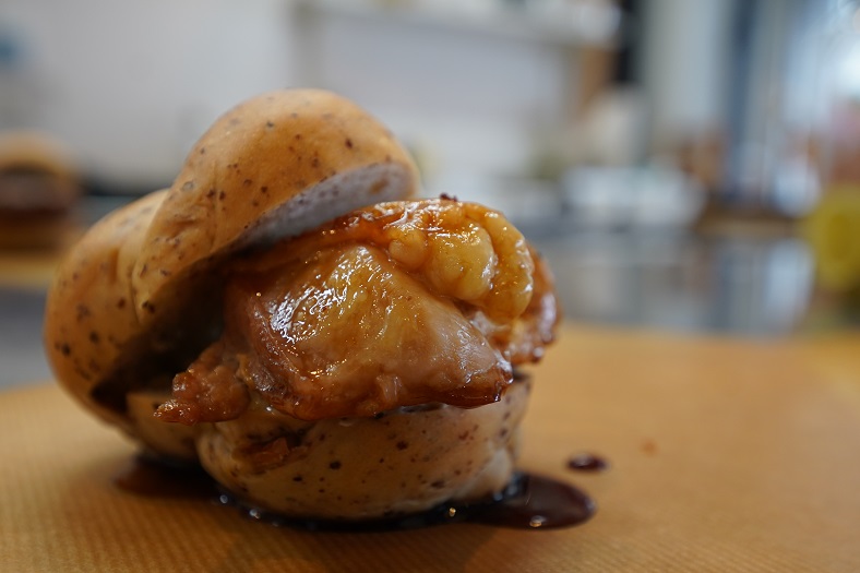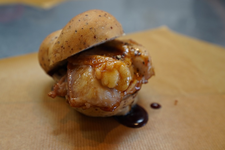 それ自体にちょっと甘みがあり、しっとりしつつ型崩れしないパン。そこに鶏肉の脂とタレが染み込んで、絶妙なハーモニーが生まれます!