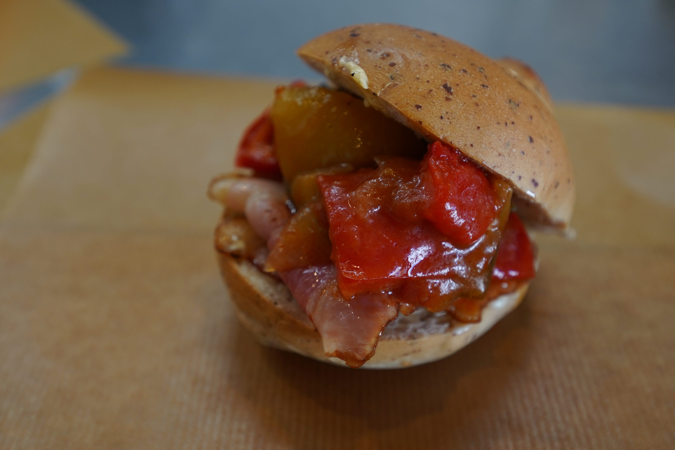 デリメニューであるラタトゥイユをミニバーガーに。ベーコンとラタトゥイユをあわせた新作で、ミニバーガー限定のメニューです。
