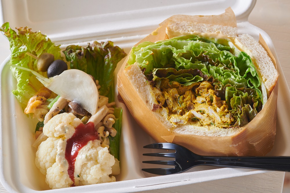 ランチセットは横浜髙島屋店だけのメニューで、かもめパンの天然酵母ライ麦食パン使用しています。ハーフサイズのサンドイッチにパスタサラダとデリ付き。値段もお手頃なお得な商品となっています。