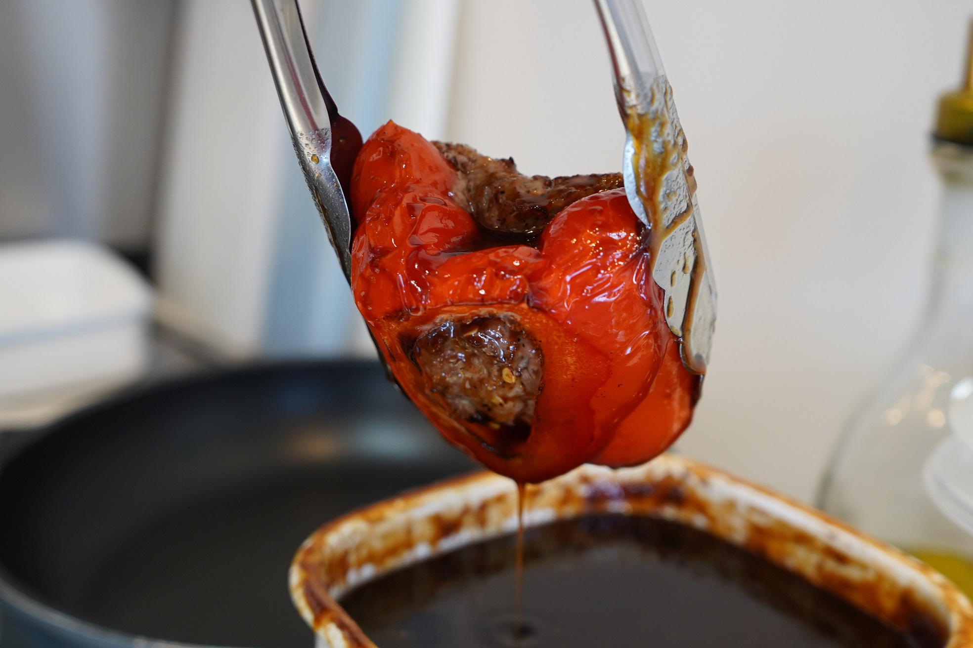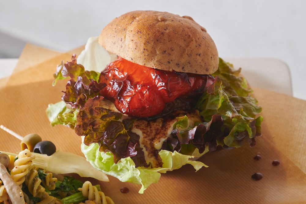 鳥茂の人気メニュー「ぴーまん」から着想を得た、パプリカの肉づめを「かもめパン」の天然酵母クルミ胚芽を使ったバンズで挟んだバーガー「パプリカ」。横浜髙島屋店だけでしか食べられない限定の新商品です。