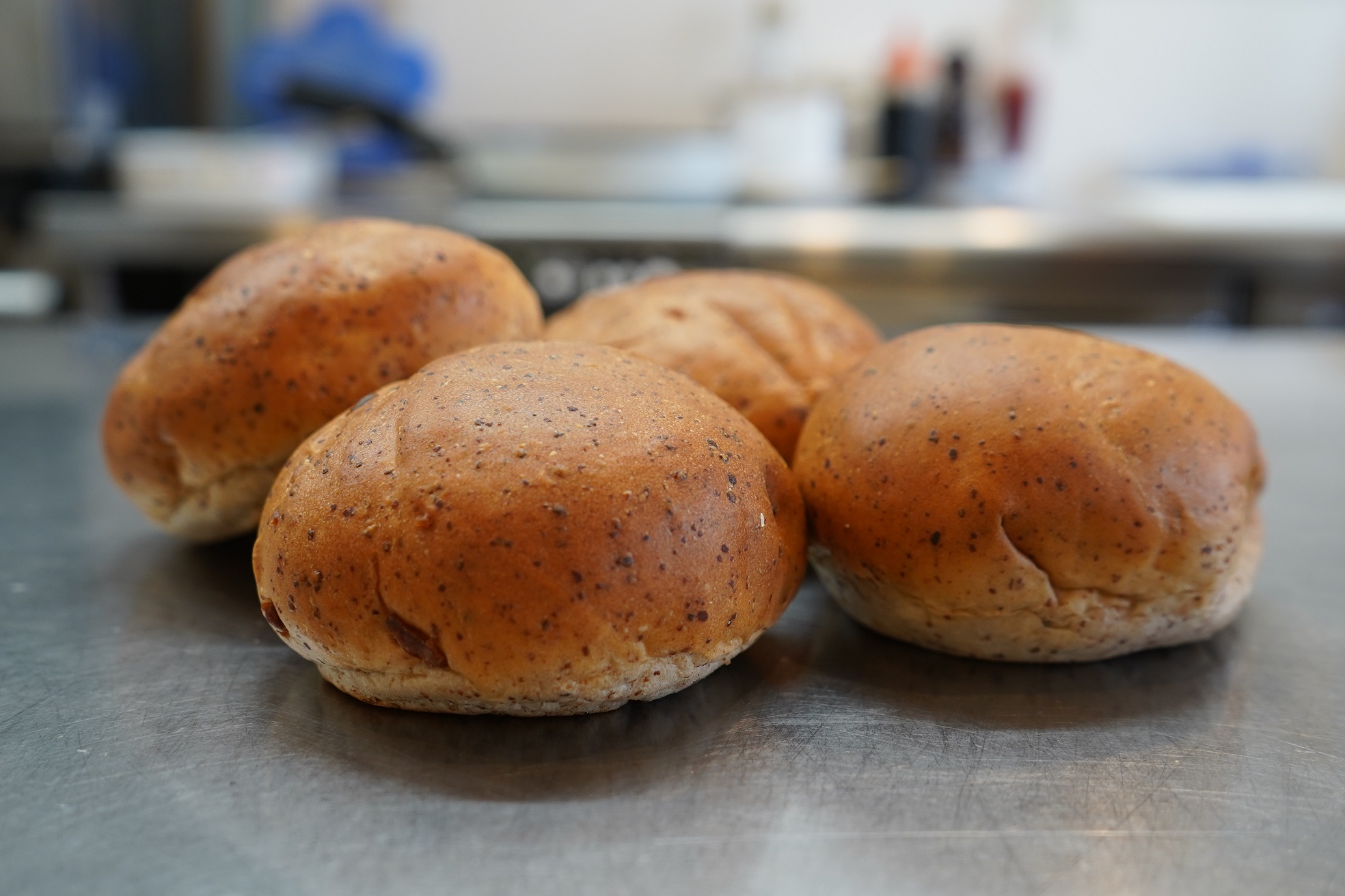 横浜だけでなく全国的にも有名な「かもめパン」は、横浜市が学校給食を開始して以来、ずっと小学校の給食パンを作っている老舗パン屋さんです。昔ながらのパンからトレンドのパンまで、横浜のパンの歴史が詰まっています。そんな「かもめパン」が、「SHIGERU KITCHEN」とコラボしてオリジナルの天然酵母クルミ胚芽を使ったバンズパンを開発し、「パプリカ」が生まれたのです。